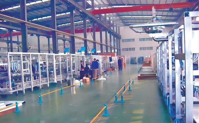 刘丰勋介绍说,该生产线自动化程度极高。在无菌环境下,自动完成制袋、印刷、切边、灌装、封盖全套流程。后续还配套了自动物流系统、大输液灭菌器、后包装系统。