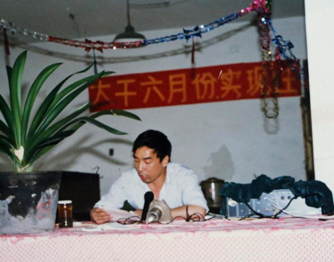 1995年6月,时任医院设备厂厂长的王世平在“双过半”发动会上作动员报告