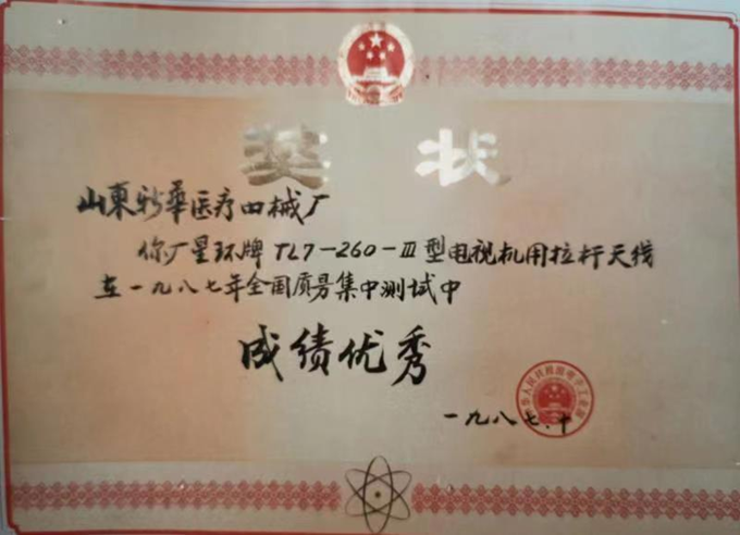 1987年,新华医疗生产的“星环牌”拉杆天线在全国质量集中测试中成绩优秀,荣获国家级奖项。