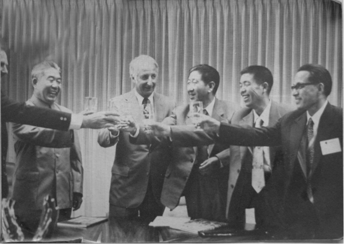 1982年7月,厂长王义(右二)、副厂长兼总工程师韩九林(右一),参加由山东省医药管理局组织的赴美考察团,对美国消毒器公司(AMSCO)进行了为期15天的技术考察