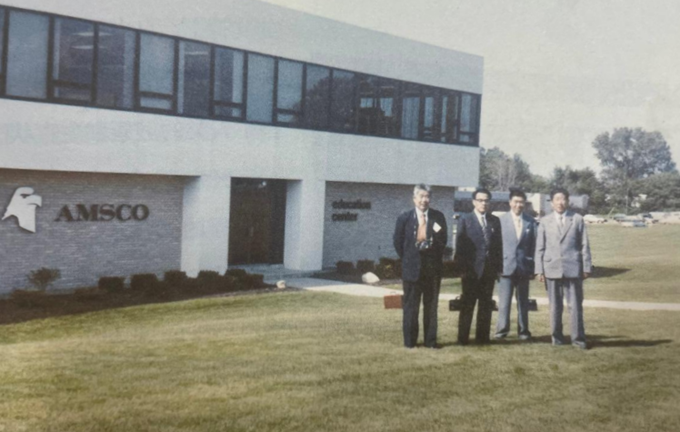 赴美国宾夕法尼亚州伊利市考察AMSCO公司,左起:钟培成、韩九林、王义、张模忠