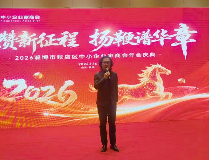 于慧致辞说,此刻,当我们步入这个会场,我相信在座的每一位同仁心中,都涌动着一股暖流,这股暖流,来自于张店区委、区政府对我们每一位企业家的关怀与信任,来自于社会各界给予我们的支持与帮助,来自于我们中小企业家商会这个大家庭守望相助、抱团取暖的磅礴力量。过去一年,我们共同走过了一条并不平坦的道路。或许,你曾在寂静的深夜里,独自面对报表,为了一个关乎企业转型的决定反复推敲;或许,你也曾为了一份订单辗转反侧,为了员工的期盼而负重前行。我们都深知,所谓“企业家”这三个字,在光环之下,是年复一年、日复一日的抉择与担当、破碎与重建,是与无数个不确定性共舞的日常。然而,正是这些看似平凡的坚持,串联起了我们最不平凡的篇章。你们把厂房变成“创造场”,把产品雕琢成“作品”,用一台机器、一份服务、一个点子,守护着无数家庭的幸福与安康。这份力量,微小如星火,汇聚起来,便是照亮张店经济夜空中最温暖的光芒。