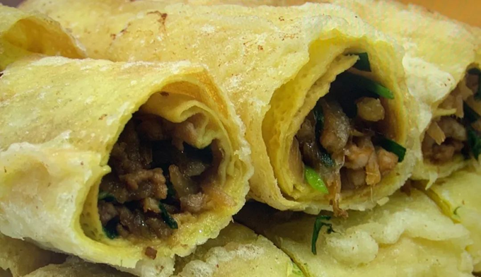 博山炸春卷是淄博博山“四四席”上的时令鲜。关键在馅料——春天刚冒头的香椿芽,那股子独特的香气,裹上蛋饼皮炸得金黄。一口咬下,那叫一个“春天的滋味”。