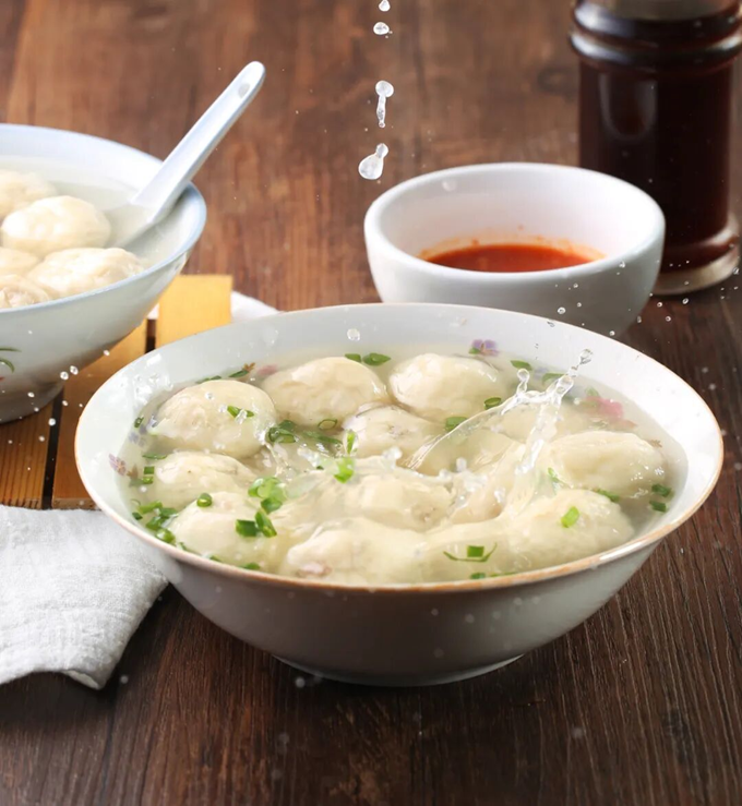 衢州龙游的豆腐丸子,吃的就是一个“鲜”字。它不是揉出来的,是在碗里“滚”出来的。把一小团肉馅放在雪白的豆腐里,在粉筛上不停摇晃,滚成圆滚滚的丸子,再下锅煮。豆腐嫩得入口即化,里面的肉丸紧实弹牙。