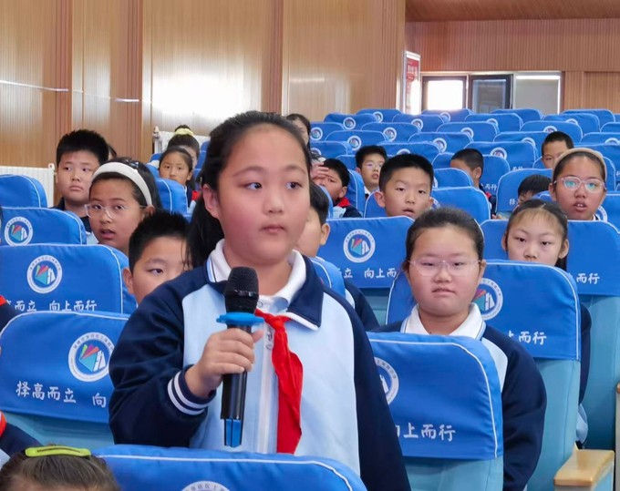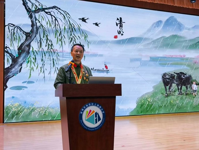 在活动第二阶段,“五老志愿者”、全国全省老兵宣讲团成员、淄博市“革命老兵红色事迹宣讲团”讲师、淄博市委党校兼职教师李浩正宣讲了革命先辈事迹,号召青少年珍惜当下,奋发图强。淄博市新时代好少年罗誉晔宣讲了红色故事《青山处处埋忠骨》,4位学生表演了诗朗诵《我们的中国梦》。主持人围绕插柳、祭祖、踏青等清明习俗提出互动问题,同学们踊跃抢答,增强了对清明文化的认同感。“淄博好人”徐娇娇做了《兴淄爱淄》先进典型宣讲。会场气氛热烈凝重,师生们怀着无比崇敬的心情接受了一次心灵的洗礼。
