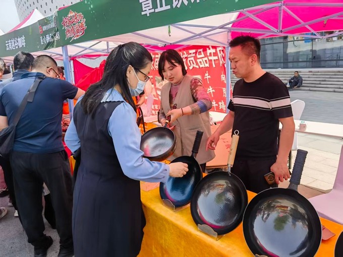 在“老铁道”章丘铁锅摊位前,一件件精美实用的手工铁锅引起了市民和游客的购买欲望。市民边女士经过一番还价后,以180元的价格买下了一口从网上300多元才能买到的“章丘铁锅”,她高兴地说:“能在家门口买到正宗的章丘铁锅真是太好了,省下我再去章丘买铁锅了。孩子正是长身体的时候,用这种铁锅炒菜口感好,孩子不会缺铁元素,用起来放心。”