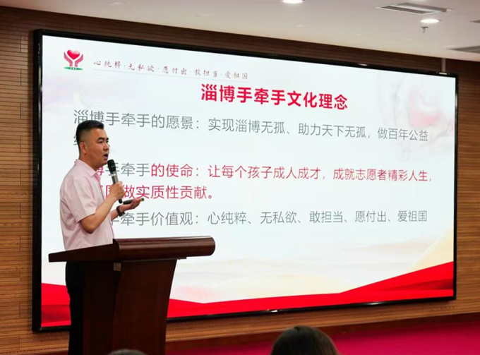 淄博市手牵手孤困儿童志愿服务中心理事长耿涛汇报了五年来“情暖童心 相伴成长”系列活动以及帮扶的成果。他说,五年来淄博市手牵手孤困儿童志愿服务中心全体志愿者辛勤努力,思路清晰、目标明确、举措扎实、推进有力,构建起市、区县、镇街三级联动帮扶体系。淄博市1816名志愿者累计投入17.7万余小时,足迹遍布淄博市31个街道、57个村镇,全面摸排走访1255名孤困儿童,实现一对一精准结对帮扶610名,开展各类关爱志愿活动830余场次,这些数字生动诠释了“奉献、友爱、互助、进步”的志愿精神,凝聚着全体志愿者的真情付出、默默坚守与无私大爱。这份深沉大爱与执着坚守,让众多困境青少年驱散心中阴霾、重拾生活信心。让孩子们不仅得到物质上的帮扶保障,更在心理慰藉、精神滋养、情感陪伴中感受到温暖与力量,真正实现困境有援、成长有爱、未来有光。