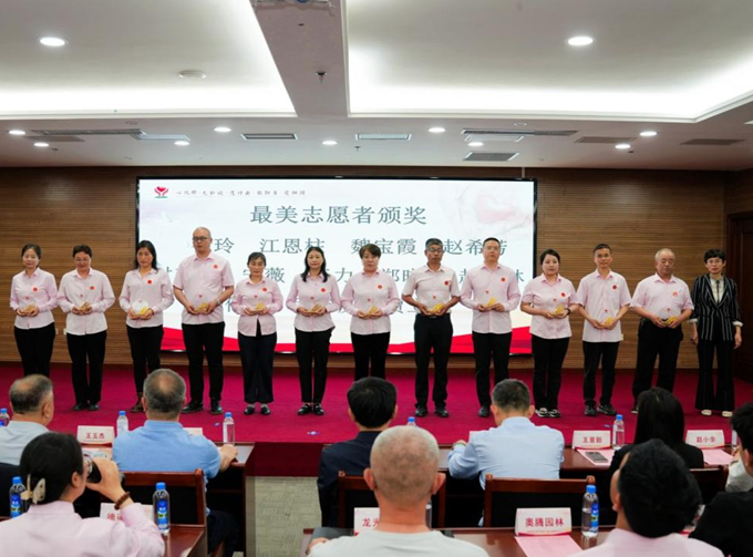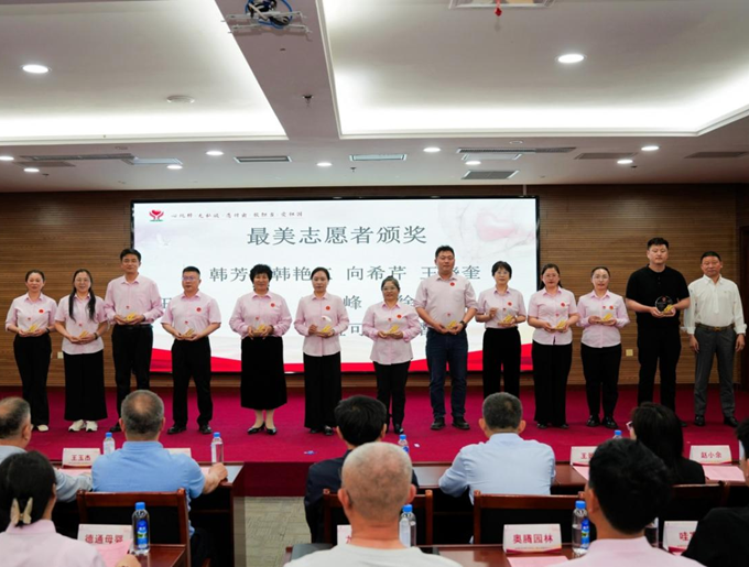 淄博市委老干部局直属机关党委专职副书记王景新,淄博市委统战部非公有制经济科科长王海娟,淄博市光彩事业促进会会长赵小余,致公党淄博市委会副主委王玉杰,致公党淄博市委会主委、淄博市政协副主席王明新分别为耿涛等36名最美志愿者、繆春熙等13名优秀党员、张帅等251名担当志愿者及淄博市郝守珍教育基金会、山东爱而生教育咨询有限公司、淄博海泰新光光学技术有限公司、淄博渔洋企业家俱乐部、淄博小善汇学文化交流有限公司、山东世晨装饰工程有限公司、淄博佳美口腔医院,淄博美瑞口腔医院、桓台渔洋商会、桓台史氏医院、桓台龙光眼科医院等34家爱心企业颁发了证书、奖牌和锦旗。淄博市手牵手孤困儿童志愿服务中心党支部书记彭俊钢主持活动。