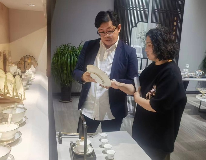 苏同强致辞说,“春来如约”,不仅是一场春日上新的美好之约,更是我们匠心坚守、致敬经典、回报客户的永恒之约。传承经典、创造新经典,今天联袂亮相的三大系列新品,就是我们深耕中华文脉,将千年东方美学融入当代生活的又一经典力作。“富江山居藏灵秀,瓷墨苍润韵瓷魂”。《富春山居》运用高温釉中彩和浮雕装饰等现代工艺,将传世名画的笔墨肌理与山水气韵一一凝于瓷上,方寸间藏温婉空灵,一器内纳山河盛景,让人们在茶餐赏器间,尽揽富春山水之美,静享淡泊从容之境。玉堂富贵凝瑞气,国色天香聚荣华。《玉堂富贵》以中式美学中极具代表性的祥瑞花木为主创元素,采取法式中国风的艺术手法,让法式的浪漫、中式的清雅晕染瓷间,既透视着文人雅士的清澈风骨,又传递着家人和美、富贵绵长的美好祝愿。黄河奔流永不息,华夏文明耀千秋。今天推出的《洄澜彩韵》马家窑彩陶文创、《古蜀惊鸿》三星堆文创,是华光国瓷黄河主题系列文创的首发之作,雄浑灵动的璀璨纹饰、古朴厚重的艺术风格,既镌刻着远古先民的智慧与审美,更展现着当代国瓷的精湛与神韵。在瓷中,古朴与时尚、豪情与雅致、文化与科技的融合之美美到了极致。