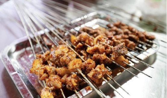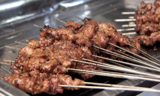 金岭烧烤风味。新鲜牛羊肉切好了直接串,不经过任何腌制。牛肉一般选用牛肋扇肉,肥瘦相间;羊肉一般选用羊肋扇肉和羊的前腿肉,比较细嫩。按斤点单。