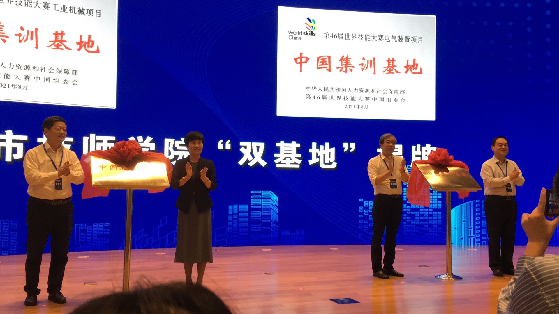 会上,省市领导为技工教育集团成员颁发牌匾,为第46届世界技能大赛工业机械、电气装置项目中国集训基地揭牌;部分企业、院校代表进行了发言。