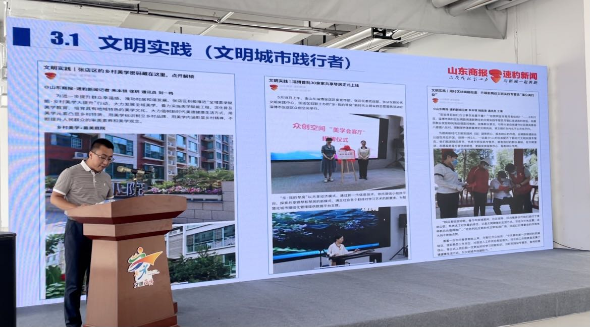 速豹新闻网淄博讯(记者 苗露 徐鲁红)6月23日,淄博市文明办、淄博市政府新闻办公室组织召开品质提升走在前·2022年文明创建应用场景示范案例新闻发布会,介绍推广“沉浸式”应用场景示范案例,总结融媒共建项目进展,通报近期创城办实地督导发现问题,加强示范引领,突出协同发力,聚焦难点破解,推动全域“沉浸式”创建工作水平再上新高度。