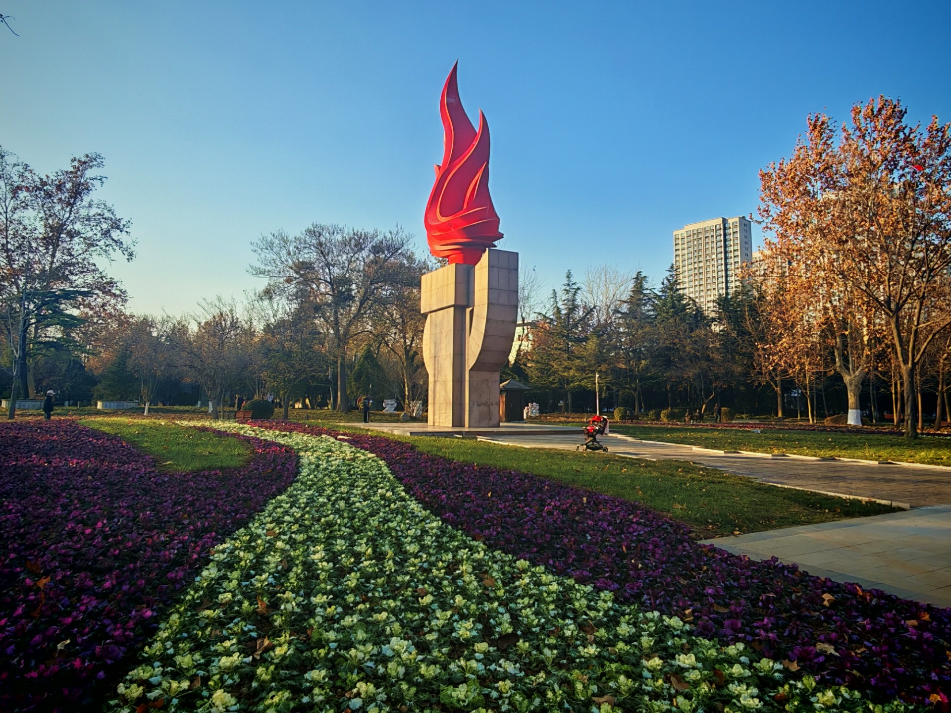 更换时令花卉,装点冬日美景。在中润大道、世纪路以及火炬公园等核心区域,精心栽种羽衣甘蓝,选定黄色、紫色品种,花色搭配既协调统一又独具匠心,与周边景观实现无缝融合。利用宽大叶片和紧凑株型覆盖地面,有效抑制冬季扬尘,改善城市空气质量,显著增强冬季景观视觉层次,提升城市景观形象,截至目前已完成栽种5万余株。