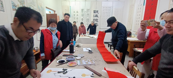 速豹新闻网苗露 王盛利 通讯员 王立国淄博报道:1月17日,淄博高新区宝山管理中心尚庄村举办“妙笔丹青书廉洁 风清气正迎新春 ”书画笔会。原淄博高新区书法家、美术家协会主席刘舜泉,中国老年书画研究会会员、原淄博高新区书法家、美术家协会副主席、淄博高新区民间文艺家协会主席孙明远,中国书画家协会会员、淄博市民间书画艺术协会秘书长张永红等书画家出席笔会并挥毫献墨,以书画颂廉洁,以笔墨扬清风,共创作廉洁主题书画作品 30余幅,对联、福字100余幅。