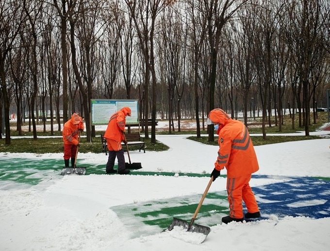 清晨6时,全体环卫工人准时到岗,迅速对人行道、公交站点、公园游园步道等机械作业难以覆盖的区域开展人工清扫,逐点清除积雪、排查隐患。18日全天,作业人员紧盯天气变化态势,针对降雪过后路面出现的积水及时清理,累计撒布融雪剂68吨,出动机械化作业设备30余台,投入作业人员1100余人次,全力保障道路通行条件持续稳定。