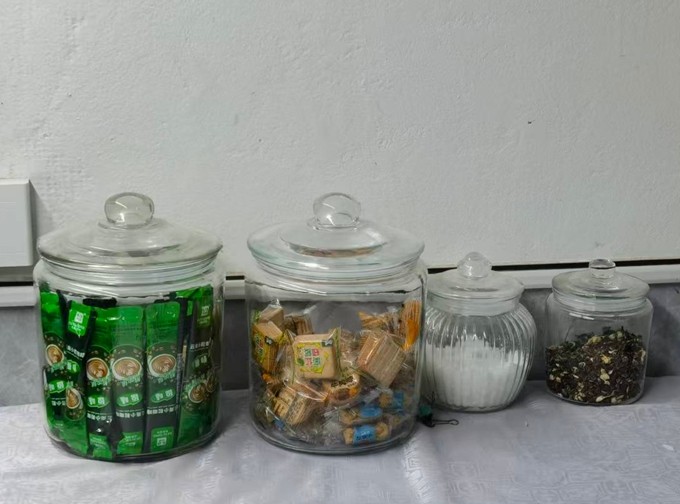 在车间主任临时办公点的一张桌子上摆放着咖啡、小点心、白糖、茶叶乃至时令水果等,供工人们休息时享用,为身体补充能量。与之相呼应的还有对面墙上的醒目标语:“开心快乐工作 健康幸福生活 轻松愉快挣钱”,体现了中强瓷业的人性化管理和对“工匠”及每一名工人的人文关怀。