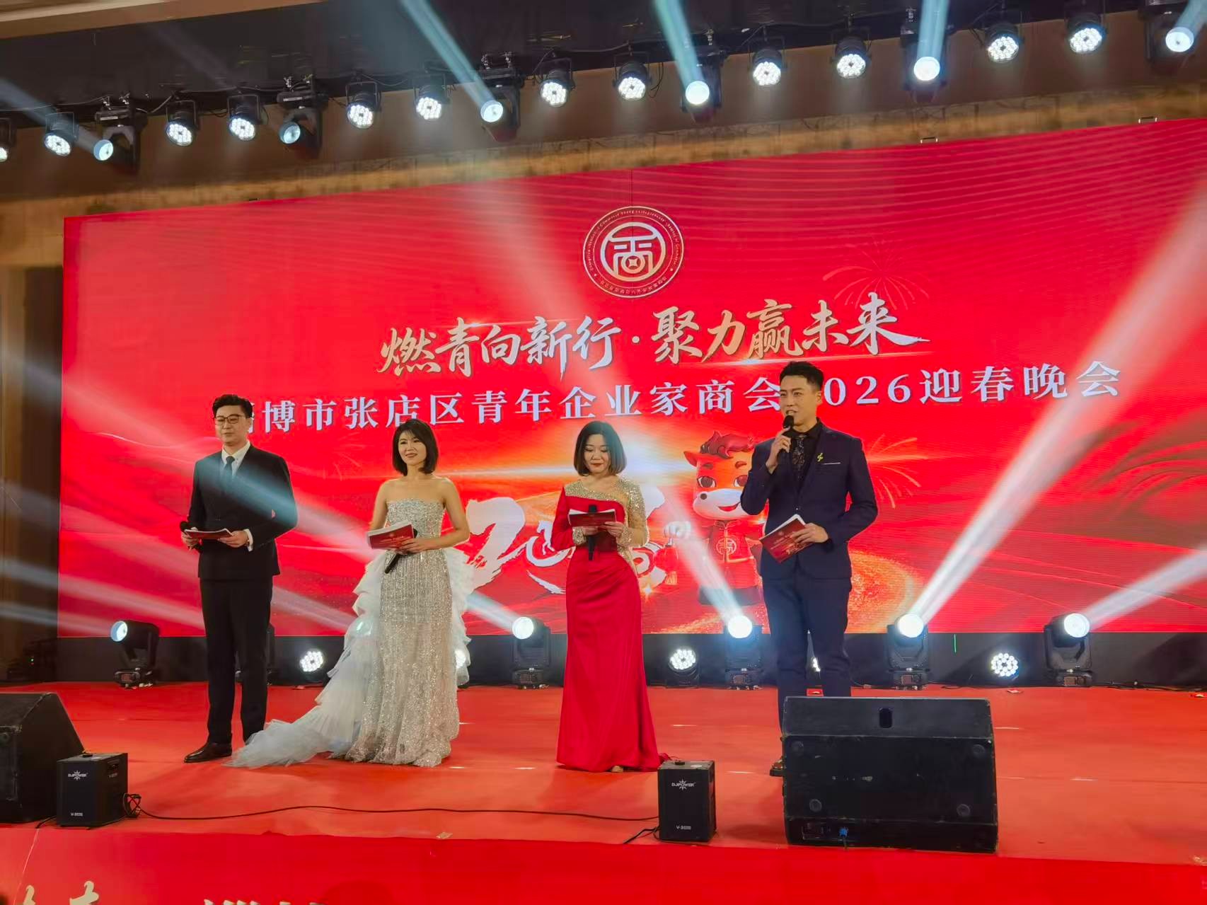 速豹新闻网苗露 王盛利 张一诺 通讯员 张文淄博报道:1月26日晚,淄博市张店区青年企业家商会“燃青向新行 聚力赢未来”2026跨年晚会在淄博海悦瑞景酒店圆满举行。张店区青年企业家商会会员单位代表与社会各界嘉宾约400人齐聚一堂,共赴青春盛宴,共话发展新篇。