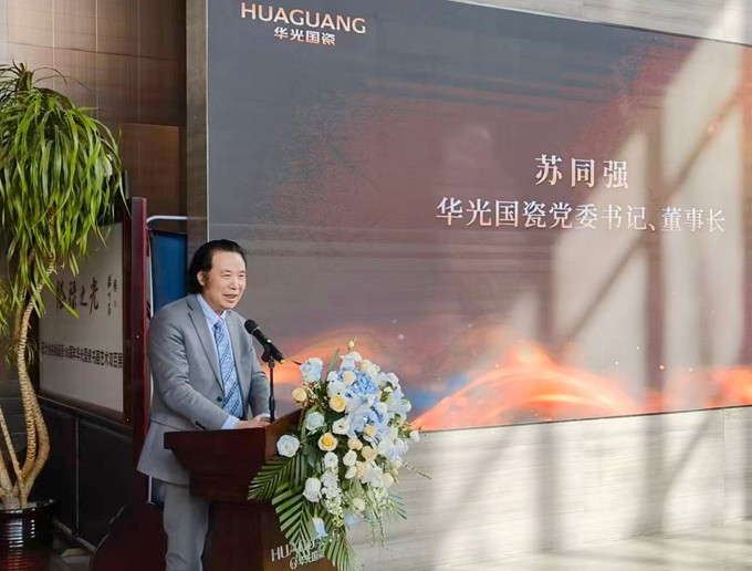 华光国瓷党委书记、董事长苏同强致辞说:“创新是最好传承。华光国瓷博物馆作为淄博市第 100 家博物馆,我们倍感自豪、也深感责任重大,我们将牢记使命、不负众望,继续秉承‘传承经典,创造新经典’的创新理念,把华光国瓷博物馆打造成为国瓷文化鲜明,国瓷藏品丰厚,集国瓷展示、文物保护、学术研究、文化交流、科普教育、创作体验、‘两创’实践于一体的高品质国瓷文化空间,让走进这里的人们,更好的感受中国当代国瓷艺术之美,读懂国瓷背后的匠心精神与文化密码。”