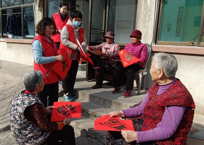 送“福”小分队手持一张张红彤彤、寓意吉祥的“福”字和春联,穿梭在周转房内,将这份新春的美好期许送到老人手中。老人们接过“福”字,脸上洋溢着幸福的笑容。“感谢村‘两委’领导一直惦记着我们,每年都来贴春联、送福字,让我们过年更有滋味了!” 张大娘激动地说。