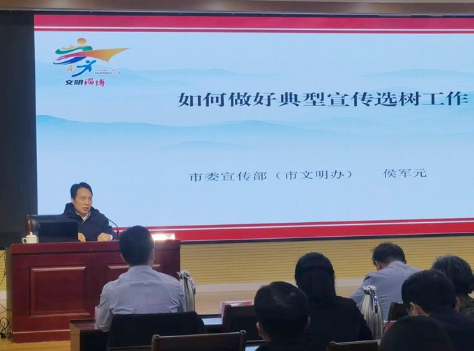 最后,淄博市文明办四级调研员侯军元围绕“如何做好典型宣传工作”进行专题授课,从理论高度、实践方法,对大家今后挖掘、选树、宣传身边典型起到了一定帮助。