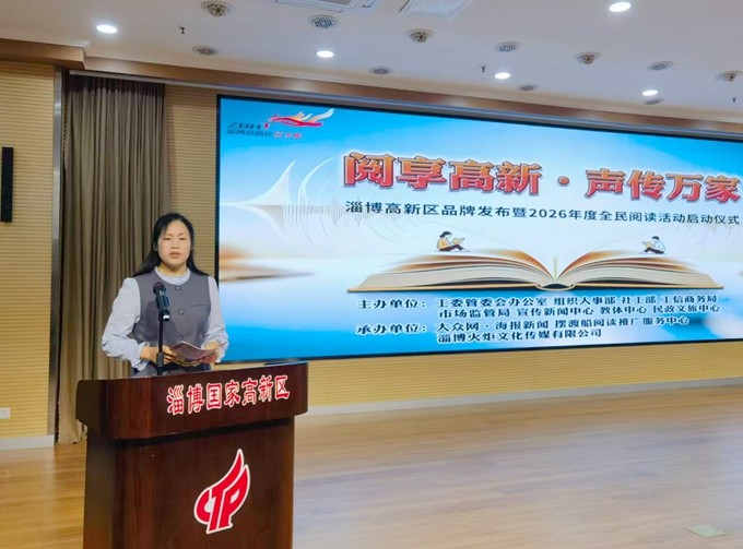 速豹新闻网苗露 王盛利淄博报道:春和景明,书香满城。4月23日是第31个世界读书日,本周也是首个依法设立的“全民阅读活动周”,由淄博高新区工委管委会办公室、组织人事部、社会工作部、工信商务局、市场监管局、宣传新闻中心、教体中心、民政文旅中心联合主办,大众网•海报新闻、摆渡船阅读推广服务中心、淄博火炬文化传媒有限公司承办的淄博高新区“阅享高新・声传万家”品牌发布暨 2026 年度全民阅读活动启动仪式在淄博高新区火炬大厦隆重举行。